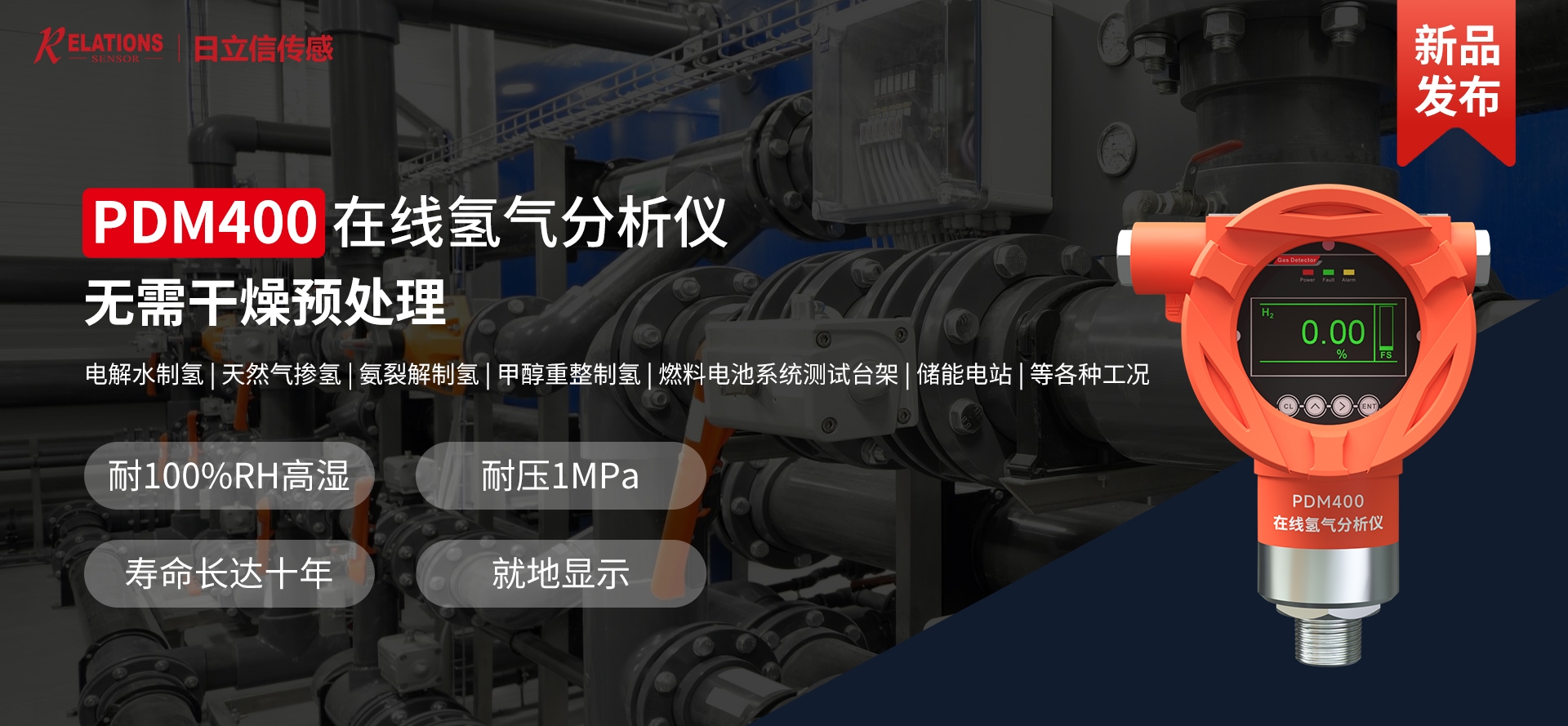 電解水、天然氣、氫分裂制氫,輸氫管道、氫氣置換,制氫站、加氫機(jī)、卸氣柱、撬裝站、氫燃料電池汽車及系統(tǒng)測試臺架、熱電聯(lián)供、氫滲氫實(shí)驗(yàn)室、涉氫生產(chǎn)廠房、氫氣氣瓶間等場合中的氫氣濃度、純度、濕度檢測。